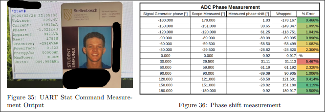 The system had to also measure the phase between the voltage and current for further accurate reactive power and power factor calculations yielding the following results: